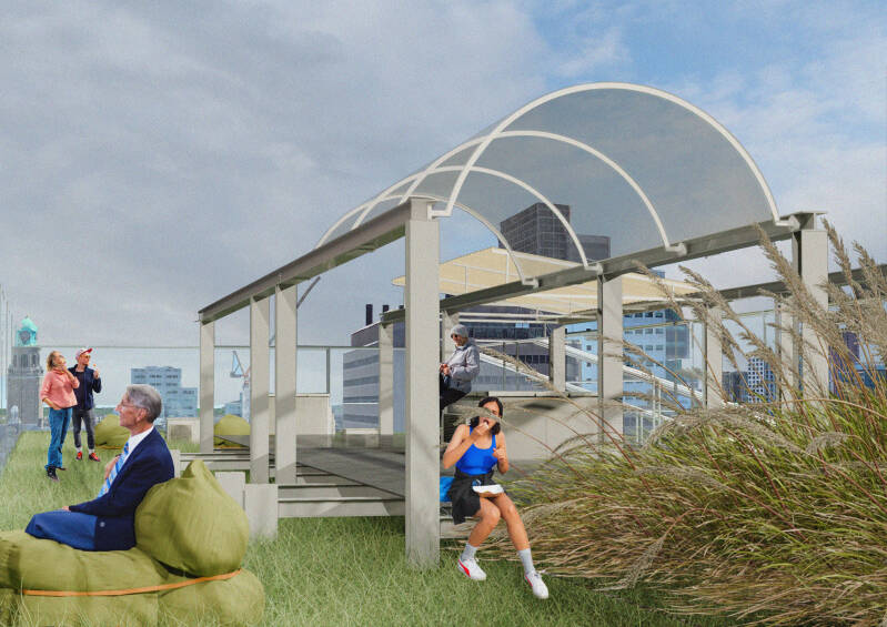 The pavilion on the rooftop can serve as a stage for live performances, like bands or DJs, turning the space into a lively event area. With the right design, it can become a natural gathering point for both residents and visitors, transforming the rooftop into a place where music and movement bring the community together. This fosters a space for celebration and social interaction.